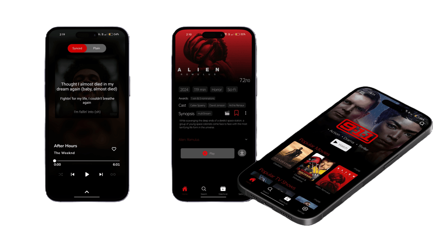 FilmU supports Musixmatch, YouTube Lyrics, and YouTube playlists, offering synced lyrics and curated playlists for an enhanced experience.